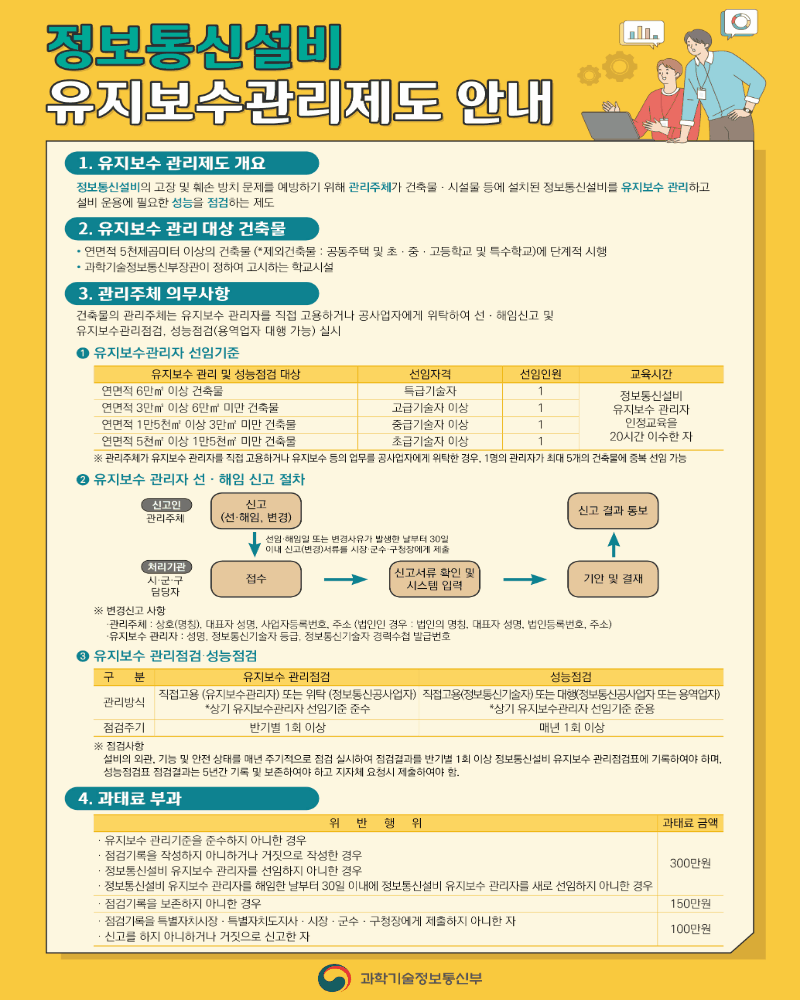 자세한 내용은 강남구청 홈페이지 → 분야별정보 → 정보통신설비 유지보수·관리제도 참조