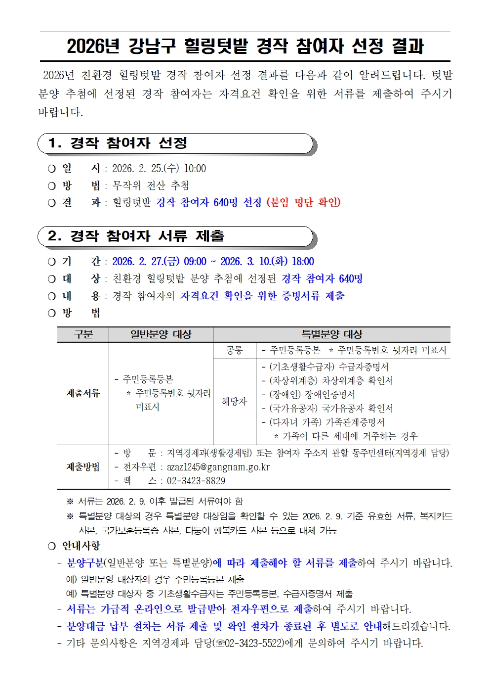 2026년 친환경 힐링텃밭 경작 참여자 선정 결과