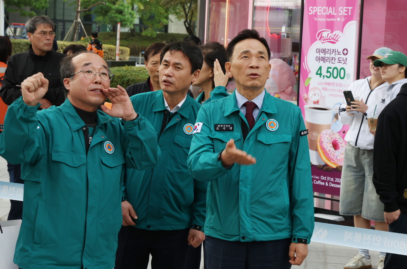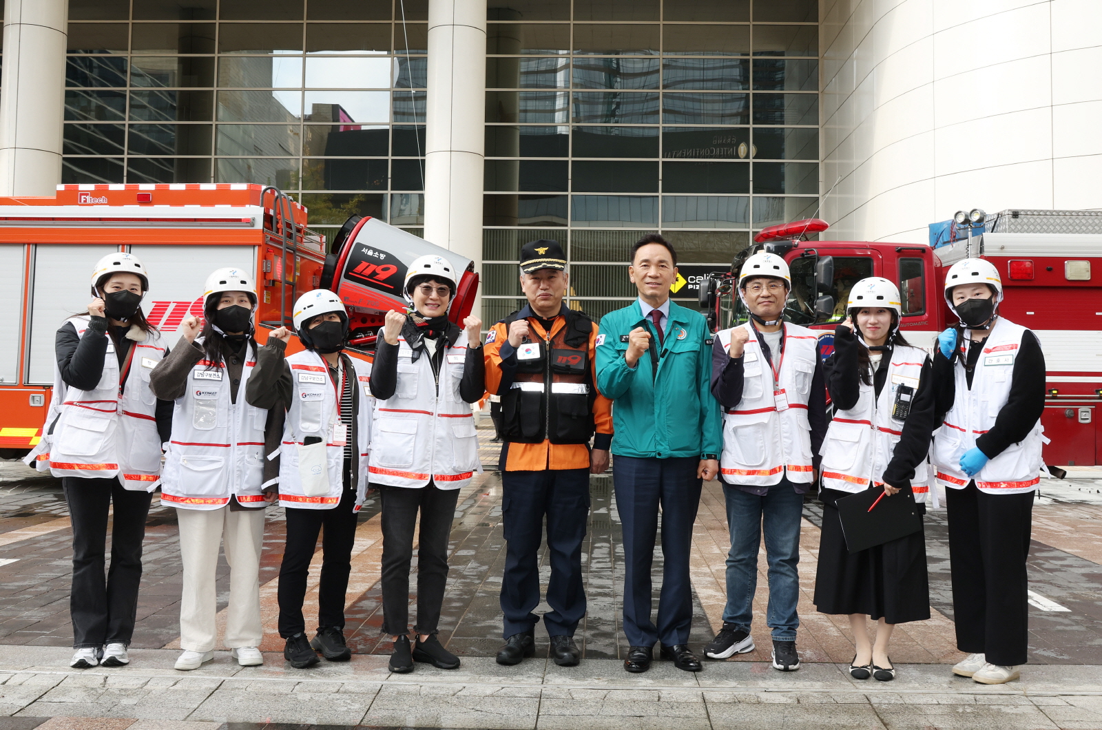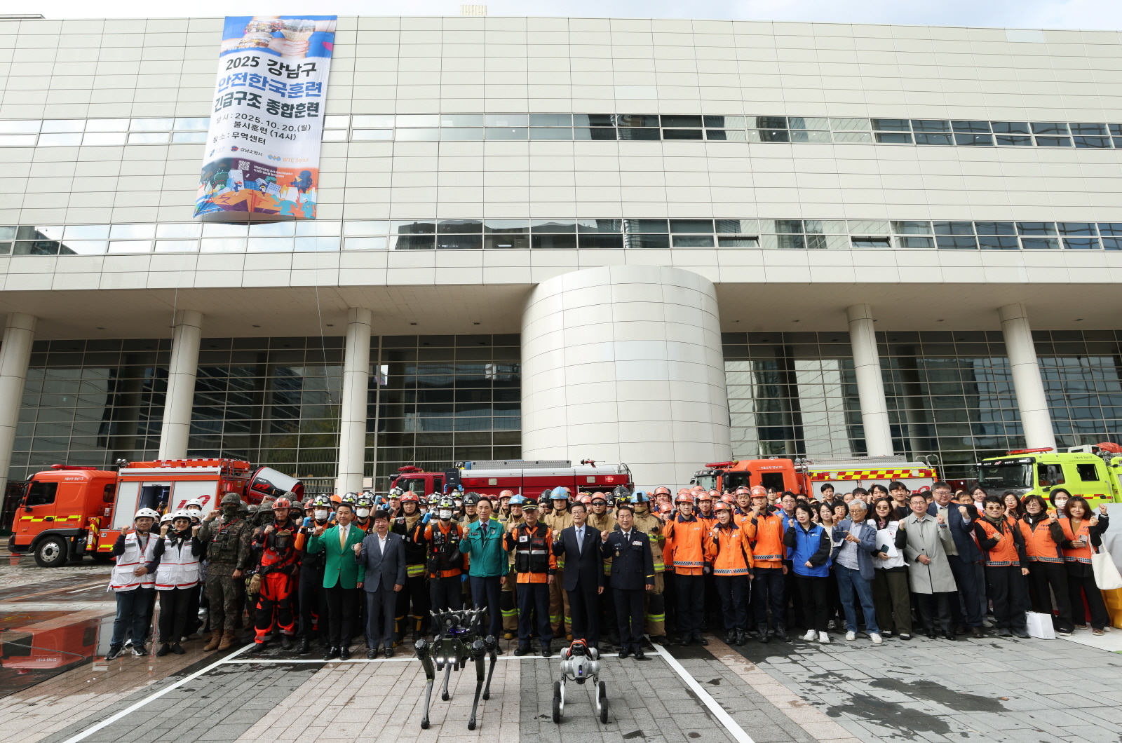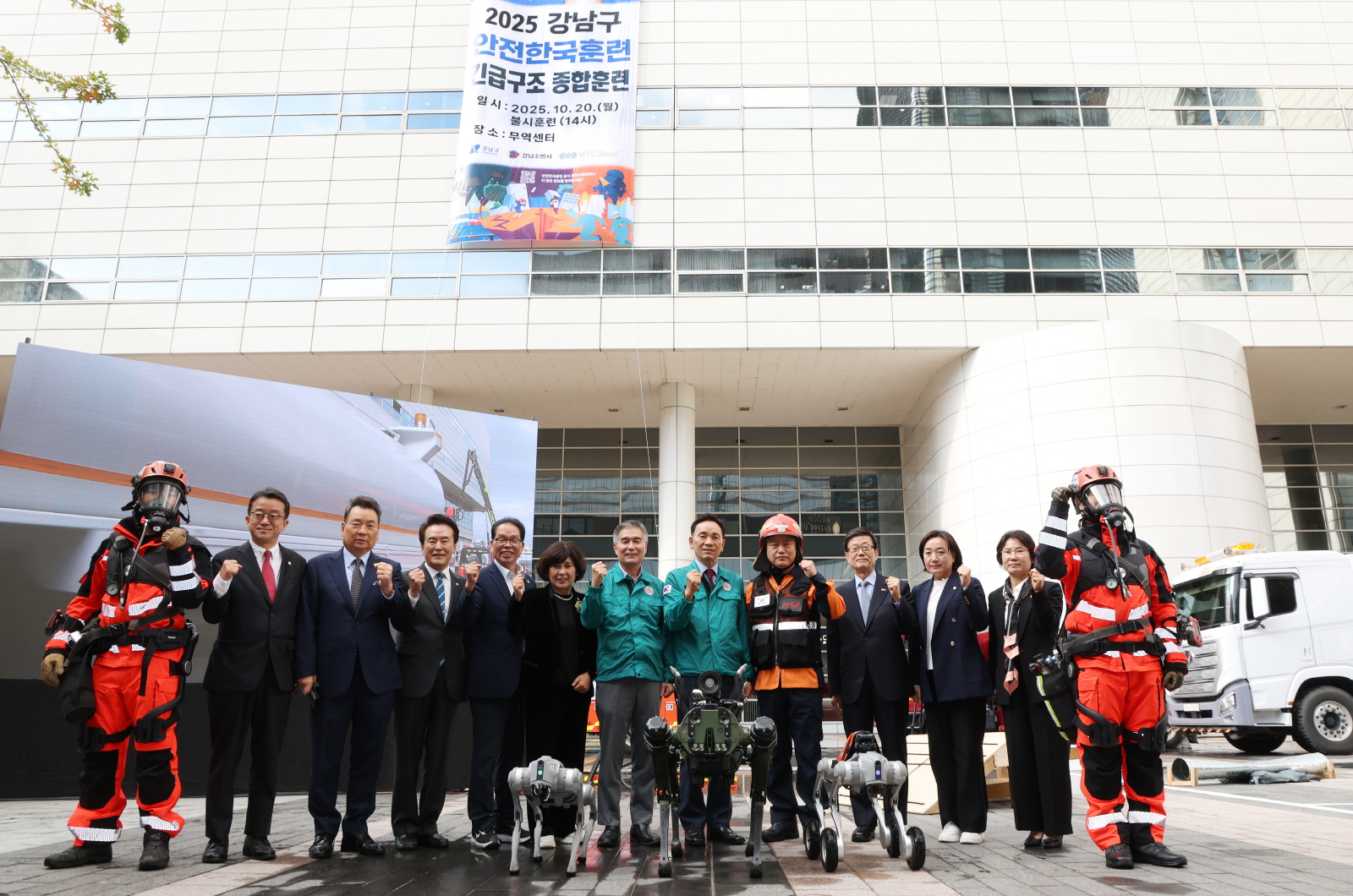 조성명 구청장이 20일 무역센터에서 진행된 ‘2025 강남구 안전한국훈련’에 참석해 재난안전대책본부 회의 주재 후 훈련을 참관하고 훈련 참가자들을 격려했다. 이날 훈련은 강남소방서, 강남·수서경찰서, 6019-3대대, 대한적십자사 서울시장, 강동경희대병원, 강남구 자원봉사센터 등 16개 유관기관이 참가해 신속한 초기대응과 유관기관과의 유기적인 업무협조, 주민참여 강화에 중점을 두고 실시됐다.