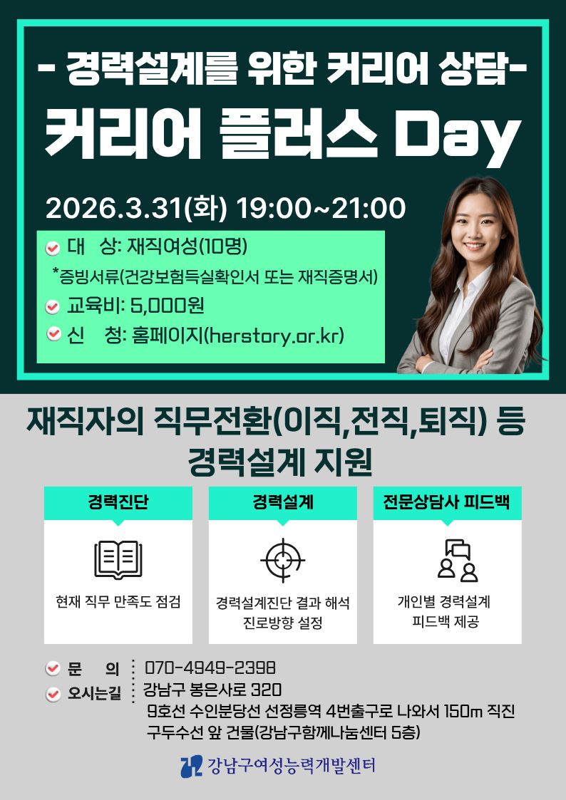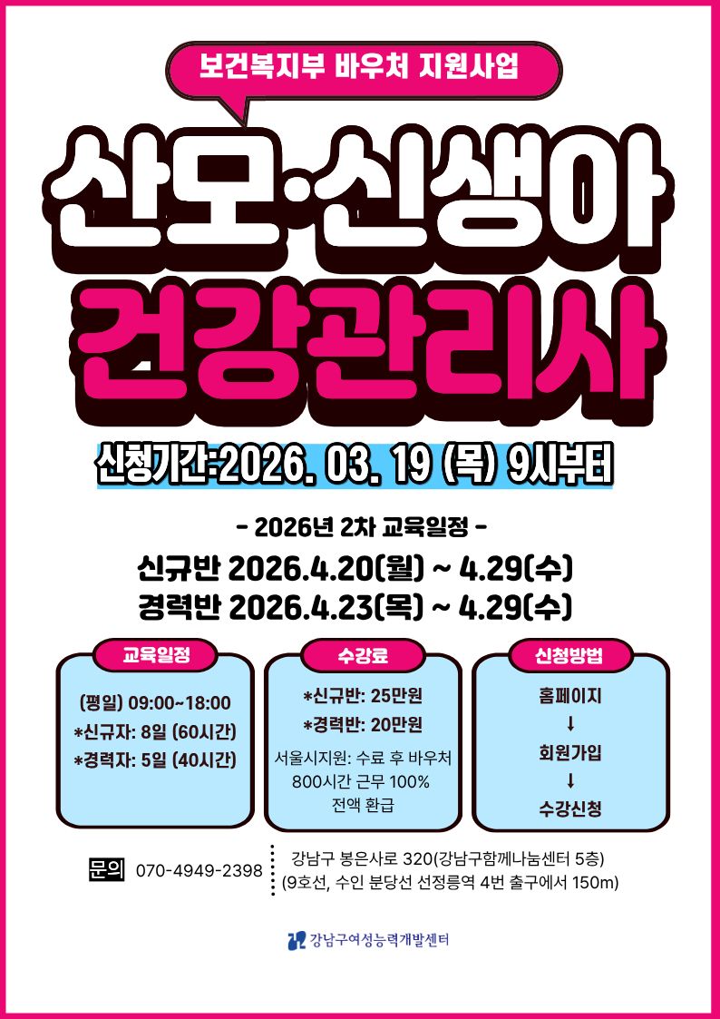 - 강남구여성능력개발센터 센터장 채용 공고[~4월 4일(토)] 2026-03-20