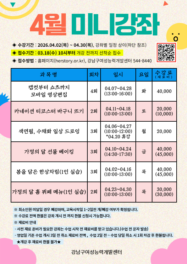 - [미니] 2026년 4월 미니강좌 수강생 모집 안내 2026-03-17