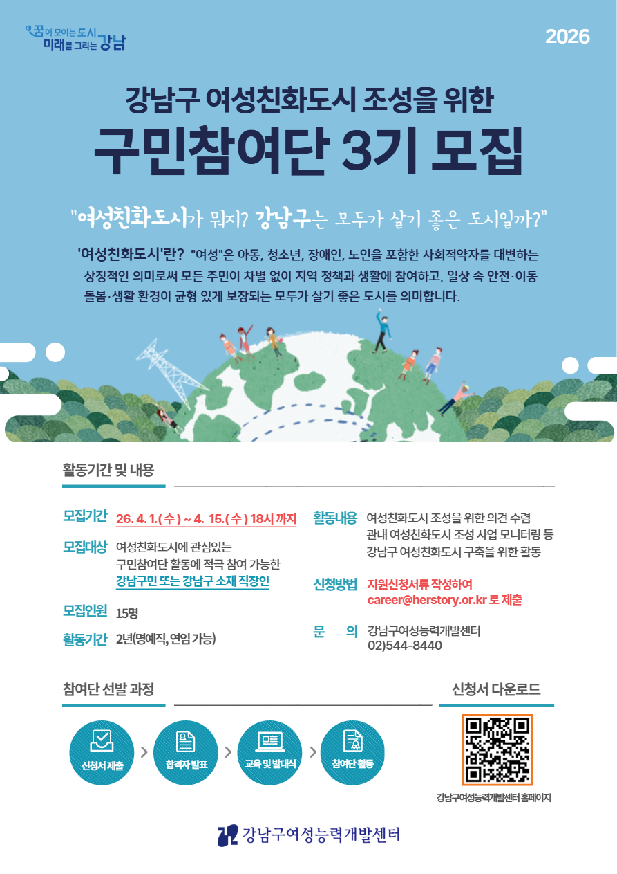 - 2026년 여성친화도시 조성을 위한 강남구 구민참여단 3기 모집 안내 2026-03-30