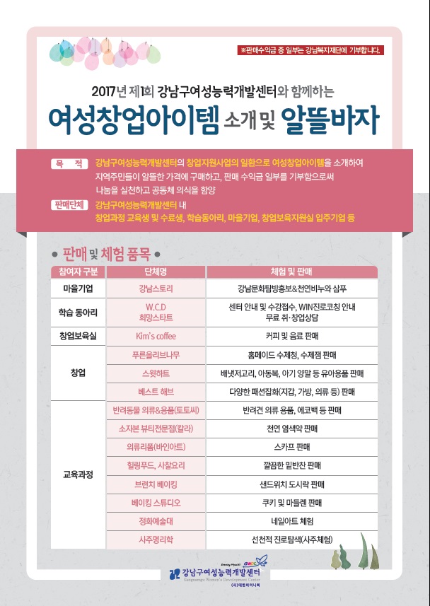 2017년 제1회 여성창업아이템 소개 및 알뜰바자