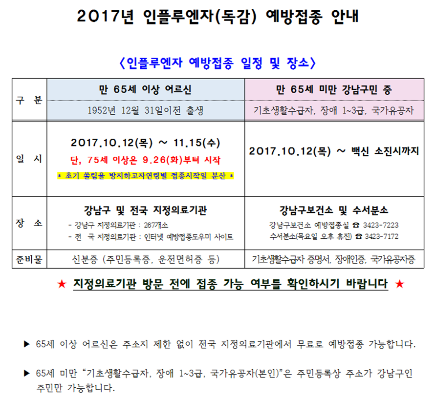 첨부 : 강남구 지정의료기관 명단(65세 이상 인플루엔자 예방접종) 1부