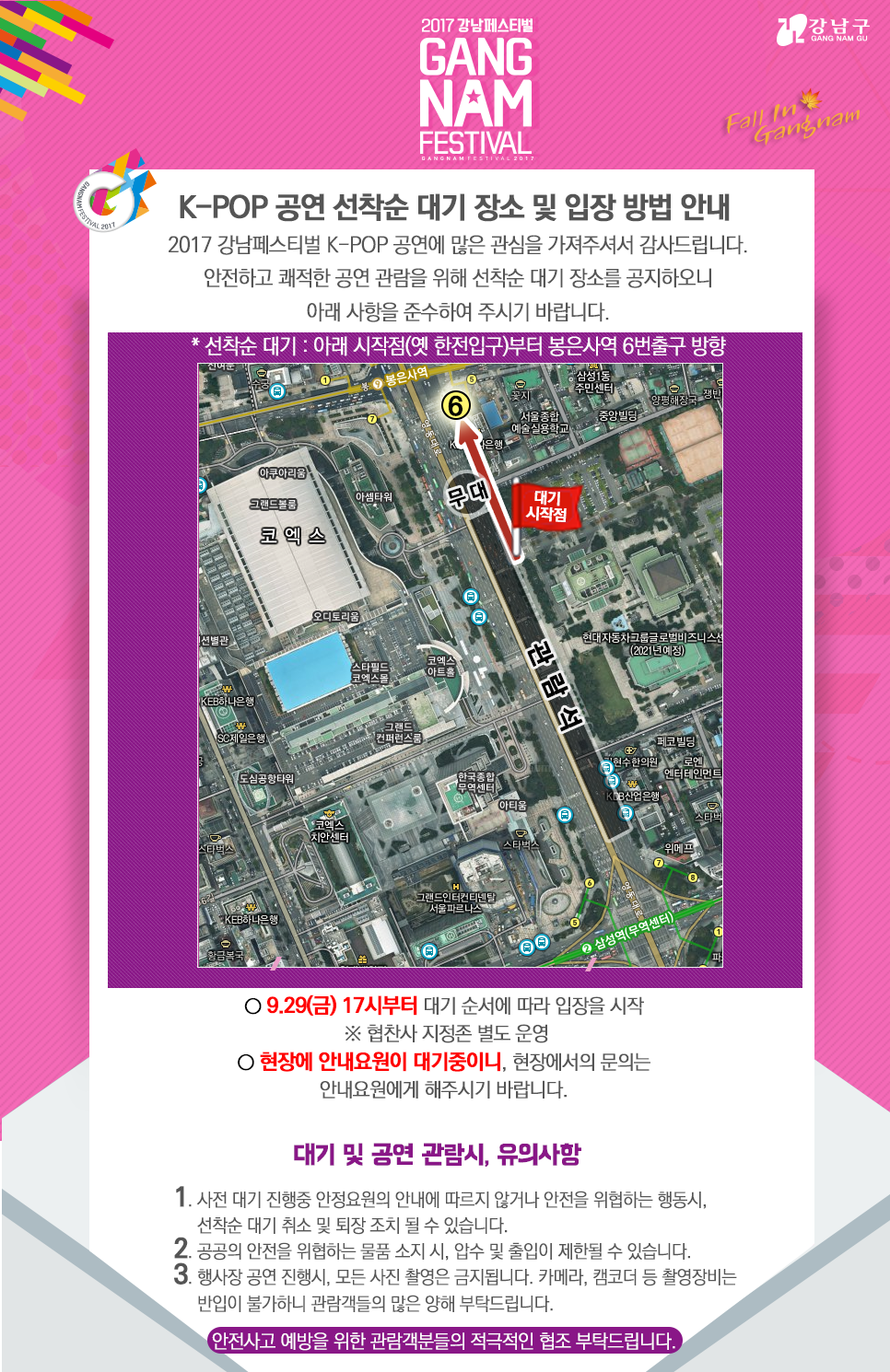 2017 K-POP 공연 선착순 대기 장소 및 입장방법 안내