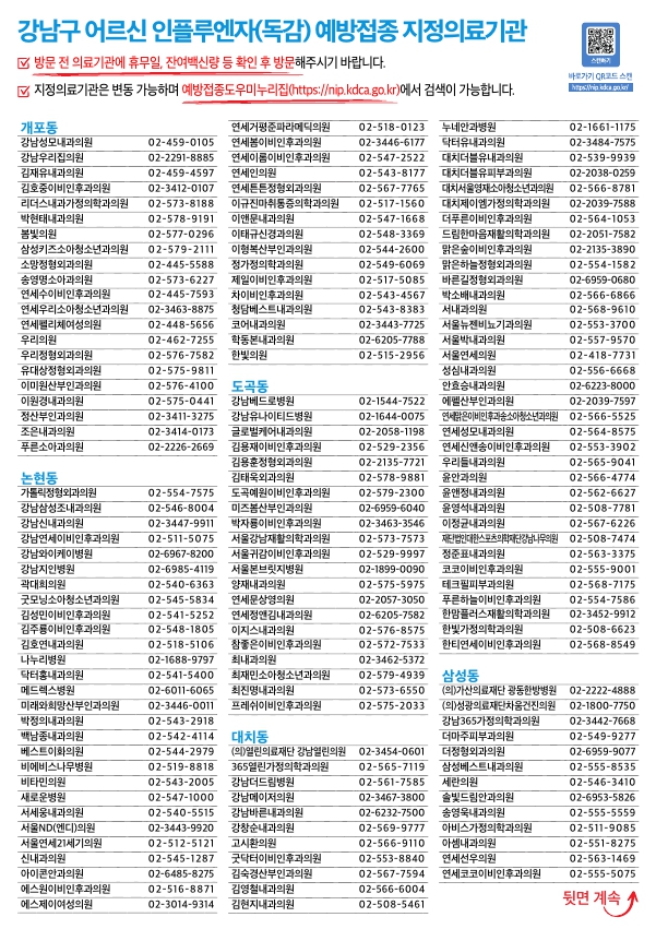 2022-2023절기 어르신 인플루엔자(독감) 국가예방접종사업 안내문(위탁의료기관 명단 포함)
