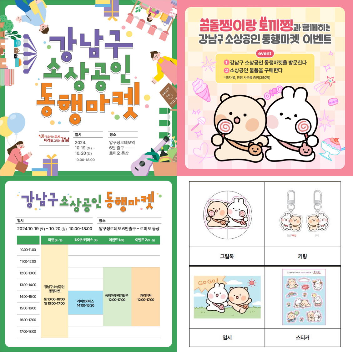 내용: 강남구 소상공인 및 구민 마켓(20개팀), 캐리커처 그리기, 팝콘이벤트, 현장라이브커머스