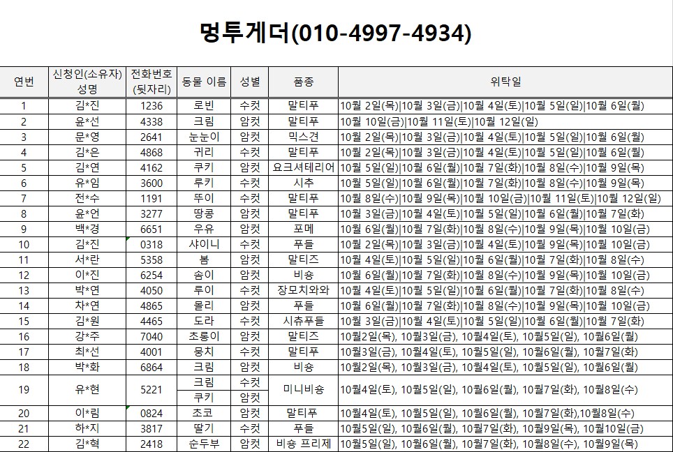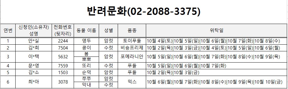 ★ 업체별 상세 이용수칙은 상이할 수 있으며, 위탁 결격사유 발생 시(필수예방접종 미접종 등) 이용이 제한될 수 있음을 알려드립니다.