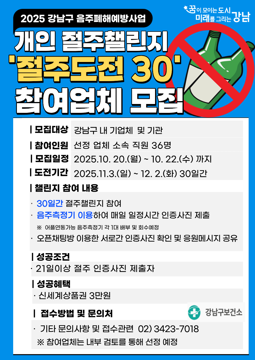 절주챌린지 절주도전 30 참여업체(기관,사업장) 모집