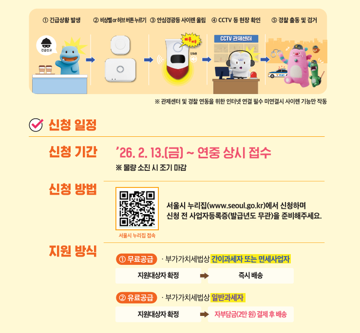 2026년 서울시 「내 가게 지키는 안심경광등」 지원사업 안내