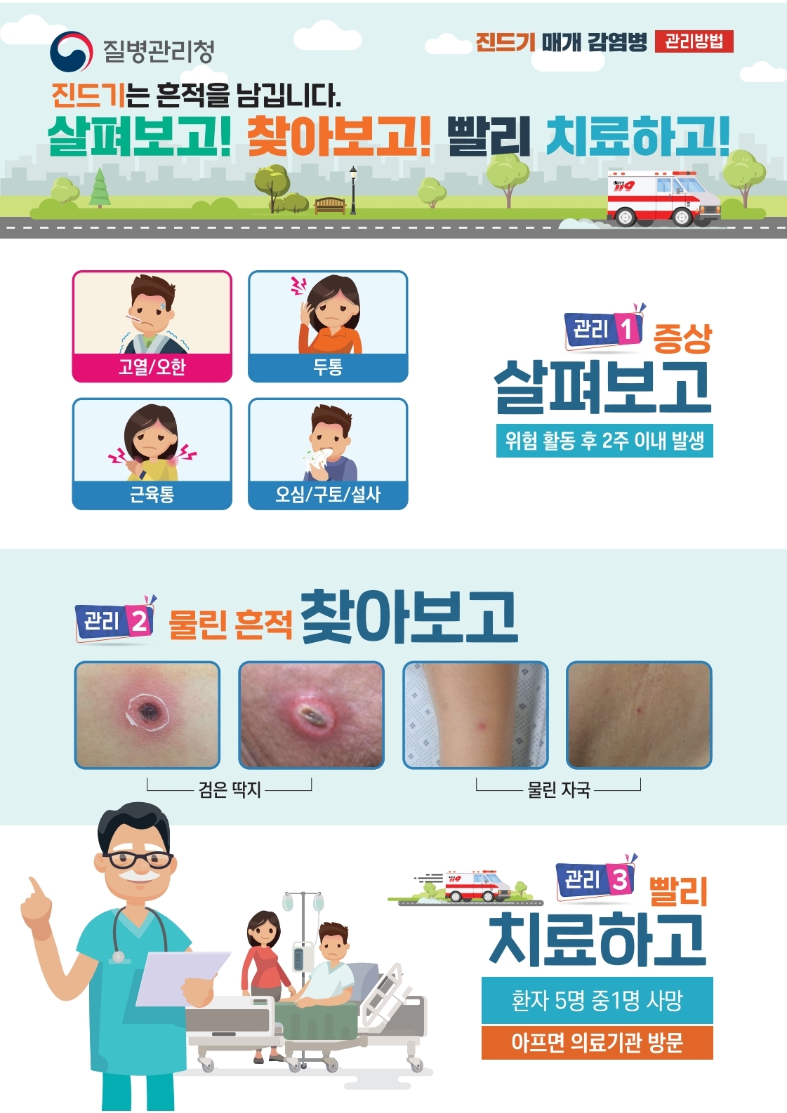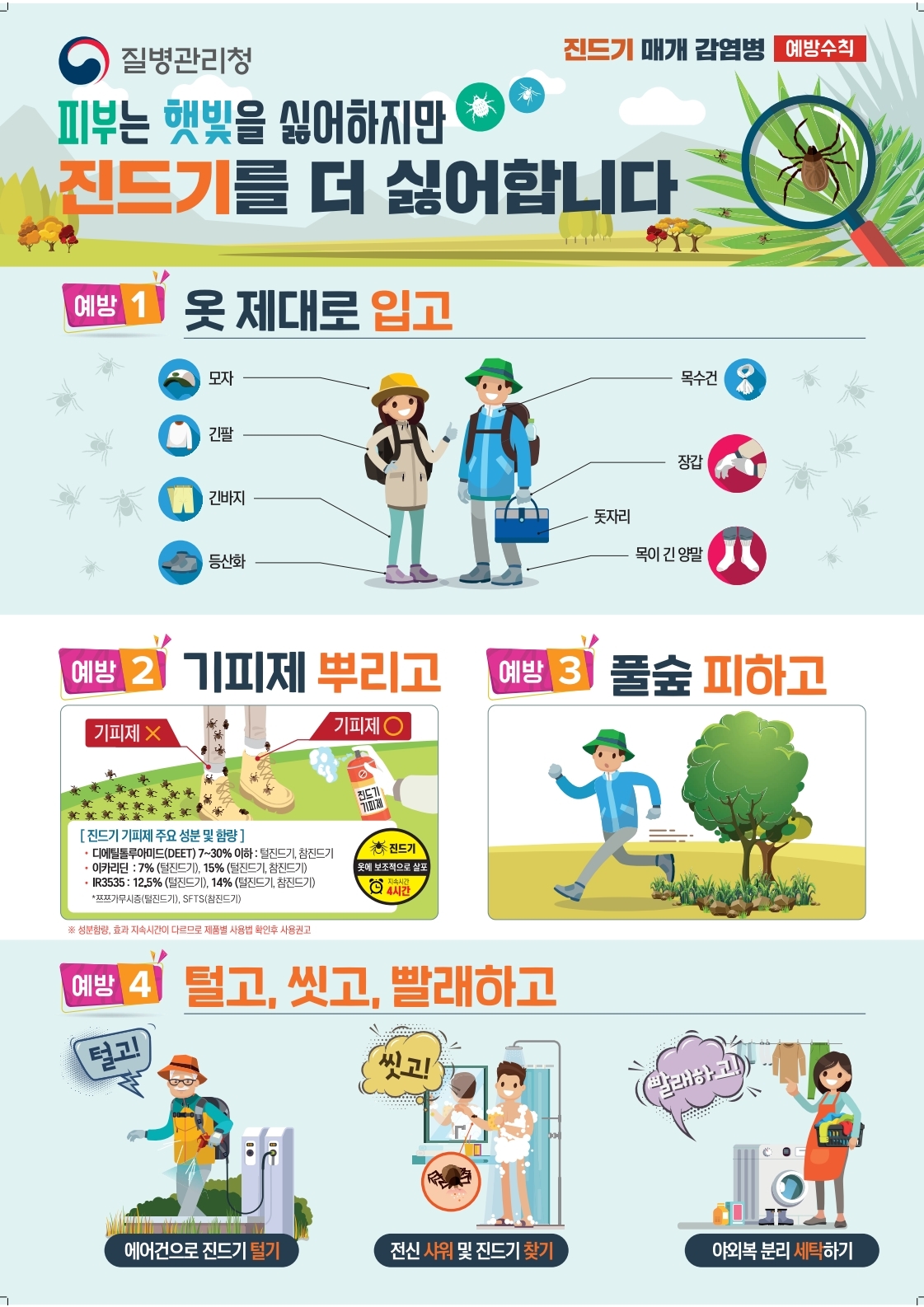 구민 여러분께서는 아래 예방수칙관리방법 포스터를 확인하시어 안전한 야외 활동을 즐기시기 바랍니다.