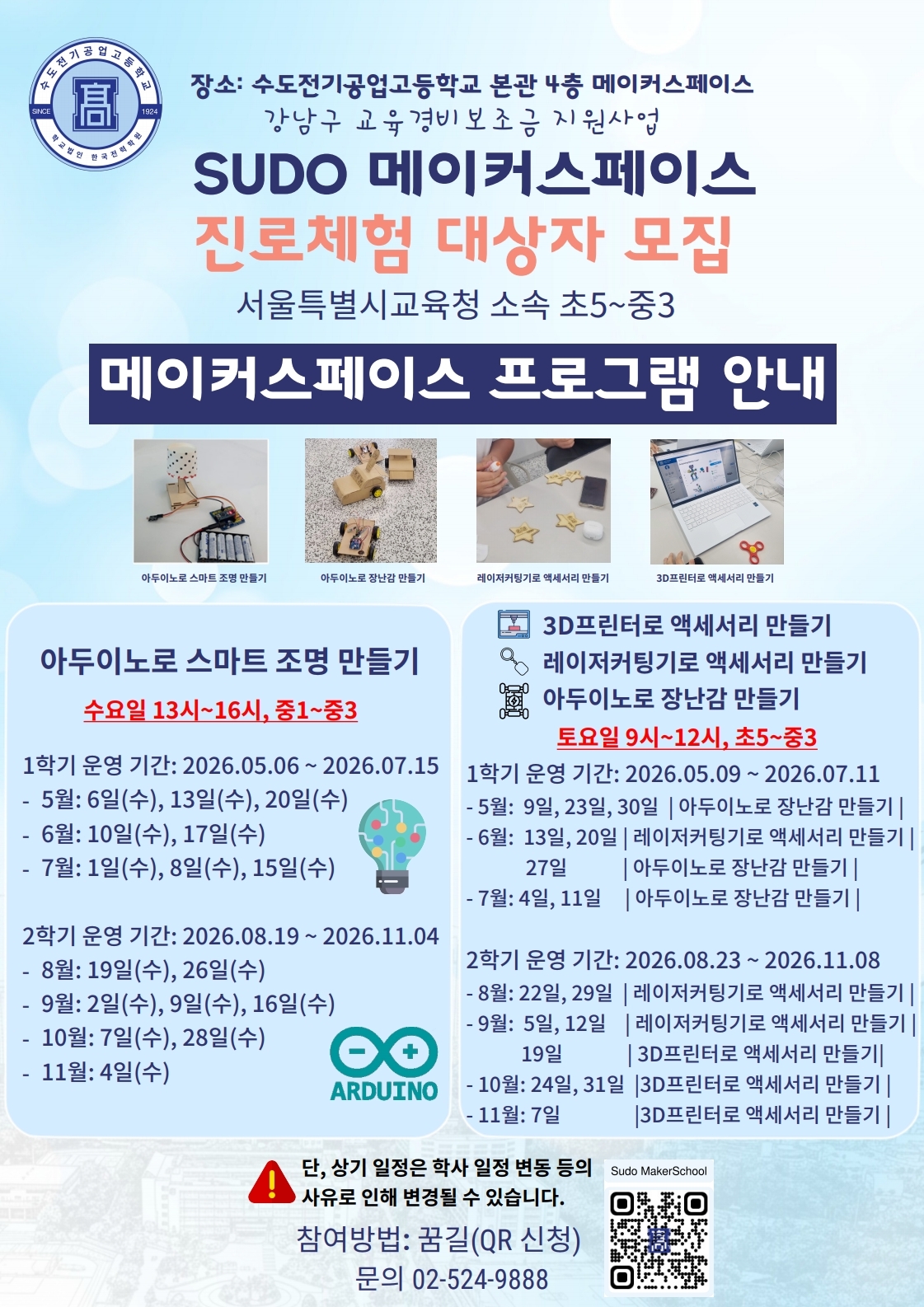 2026 수도전기공업고등학교 메이커스페이스 프로그램 신청자 모집안내