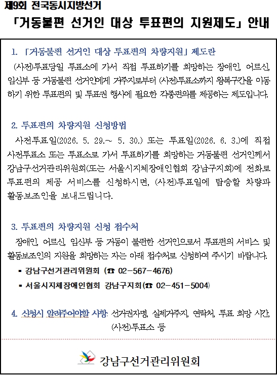 제9회 전국동시지방선거 거동불편 선거인 대상 투표편의 지원제도 안내
