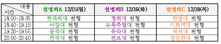 ○ 주제: 서울 소재 주요대학 2026 대입 정시전형 및 해외대학 등의 입학전형 안내