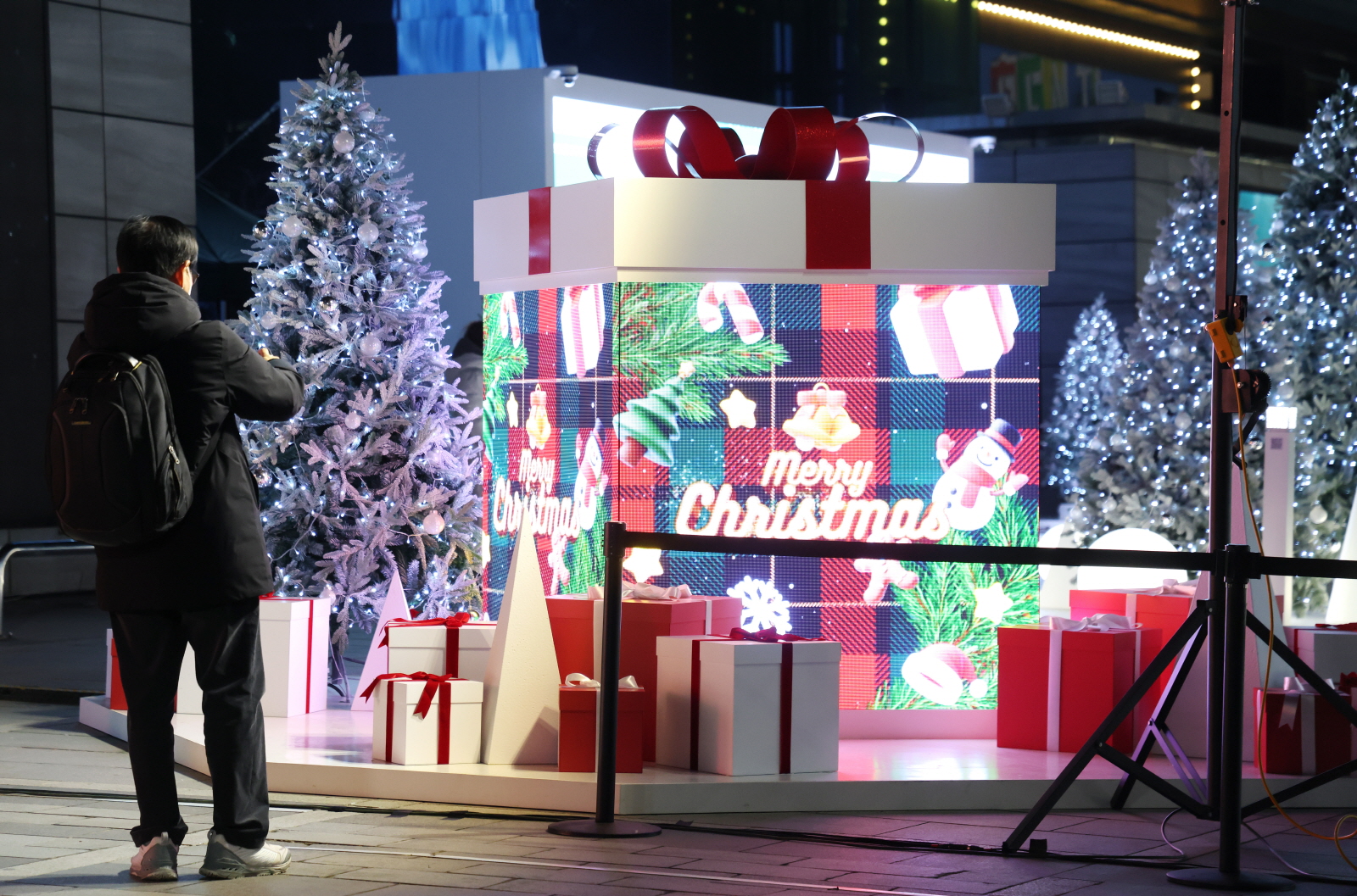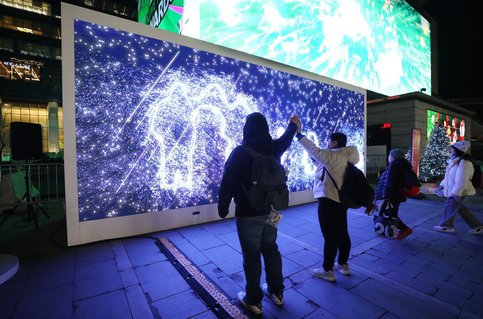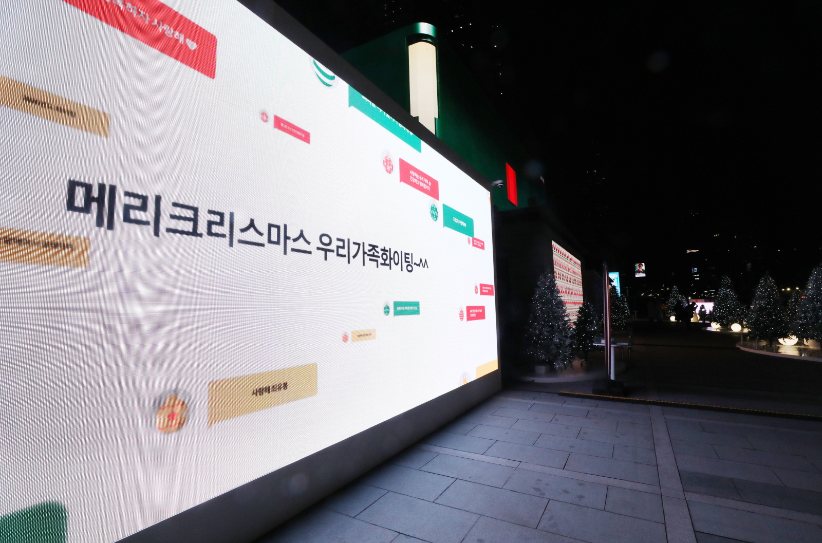 QR코드로 접속해 크리스마스 소원을 쓰면 LED 화면에서 보이는 ‘메모리월(Memory Wall)’
