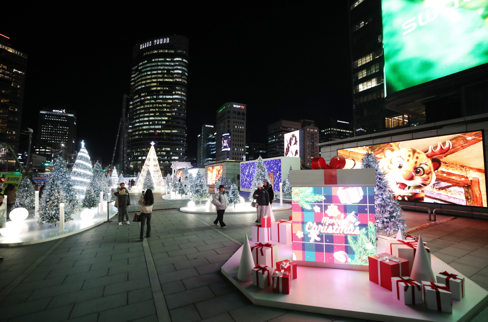 크리스마스부터 새해까지 삼성역 코엑스 광장과 K-POP 광장 일대에서 겨울 감성 넘치는 미디어아트 작품을 감상할 수 있다. 12월 19일부터 내년 1월 3일까지 열리는 대형 미디어아트 축제 ‘2025 강남 미디어 윈터페스타’에서는 삼성역 일대 4개 건물, 7개소, 17개의 대형 LED 미디어를 통해 강남 도심 속에 새로운 빛을 밝힌다. 오는 12월 25일까지는 서울의 상징 캐릭터 해치가 산타와 루돌프로 변신해 선물을 전하는 크리스마스 테마쇼 ‘해치의 빛 선물’을 상영하고 26일부터 1월 3일까지는 2026년 말의 해를 맞아 아기 붉은 말이 전통놀이를 즐기며 성장해 나가는 새해 테마쇼 ‘플레이 판타지 2026’을 상영한다.