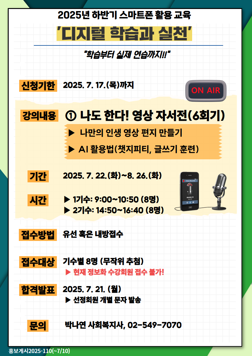 대상: 기수별 8명 (정보화 수강 회원은 접수 불가!)