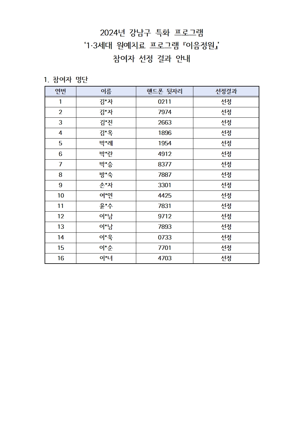 2024년 '이음정원' 참여자 선정 결과를 안내 드립니다.