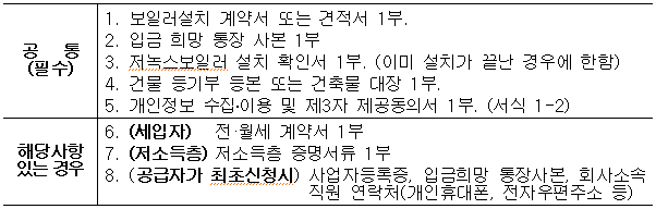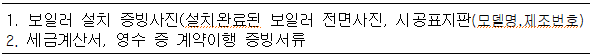 - 제출서류 : [서식 2] 보일러 설치 확인서 및 구비서류 참조