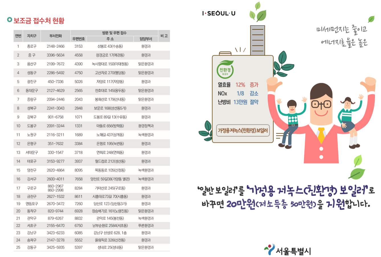 o 신청방법 : 공급자는 보일러 교체 전 관련서류를 첨부하여 강남구청 환경과에 보조금 지급 요청서 및 구비서류 접수