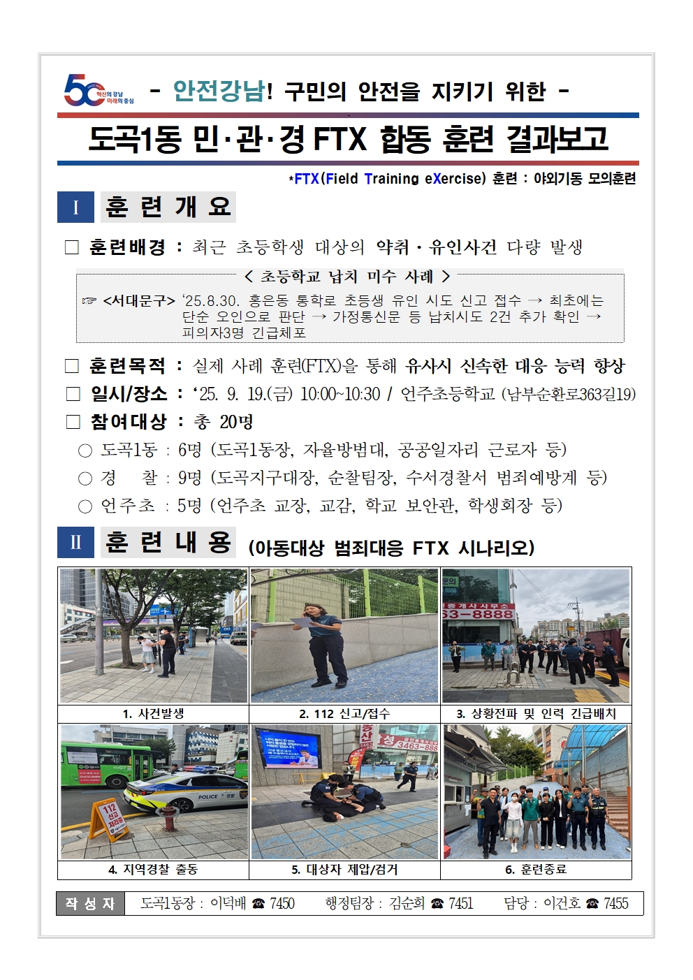 도곡1동 민·관·경 FTX 합동훈련 추진(2025.9.19.)