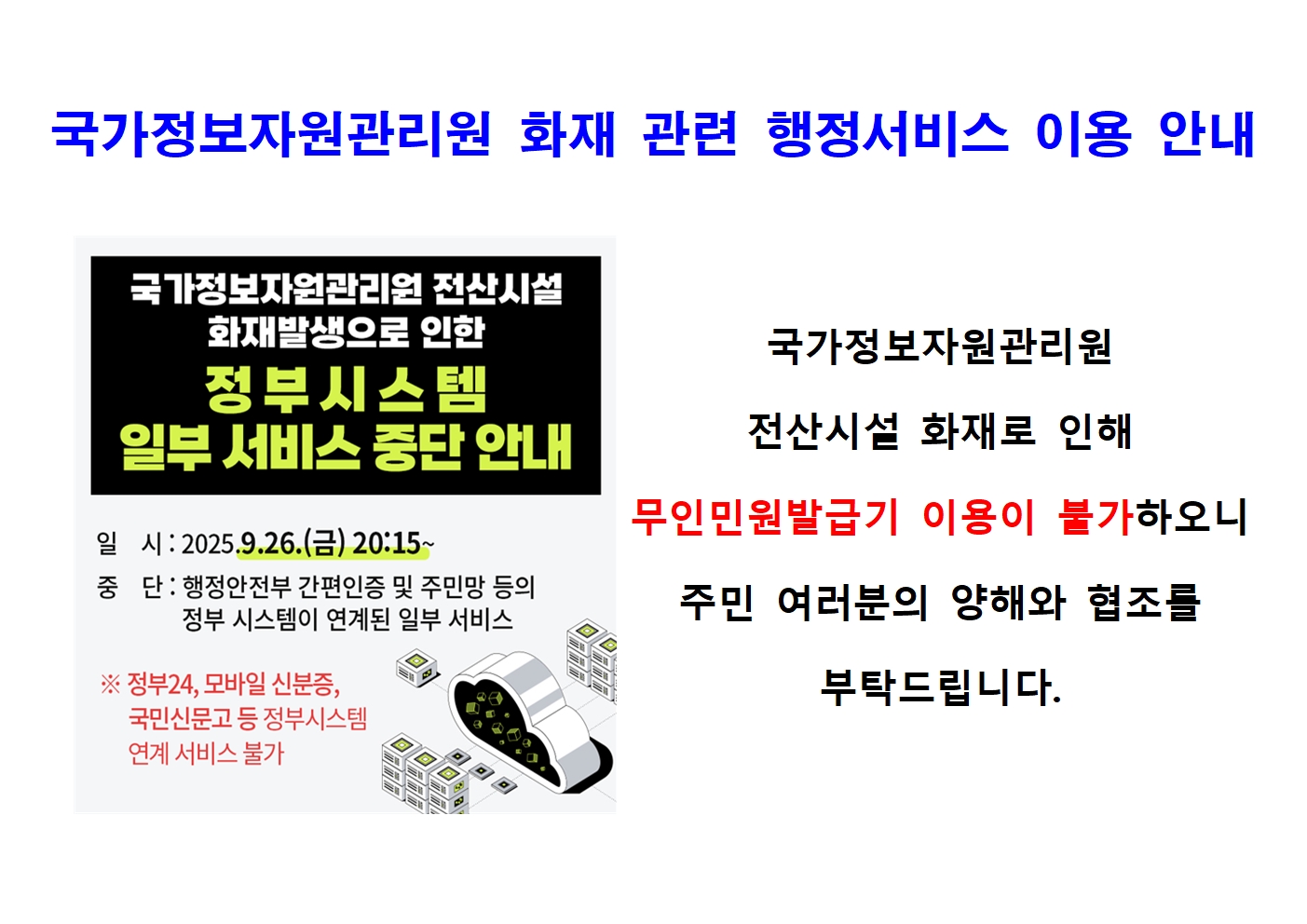 국가정보자원관리원 화재 관련 행정서비스 이용안내