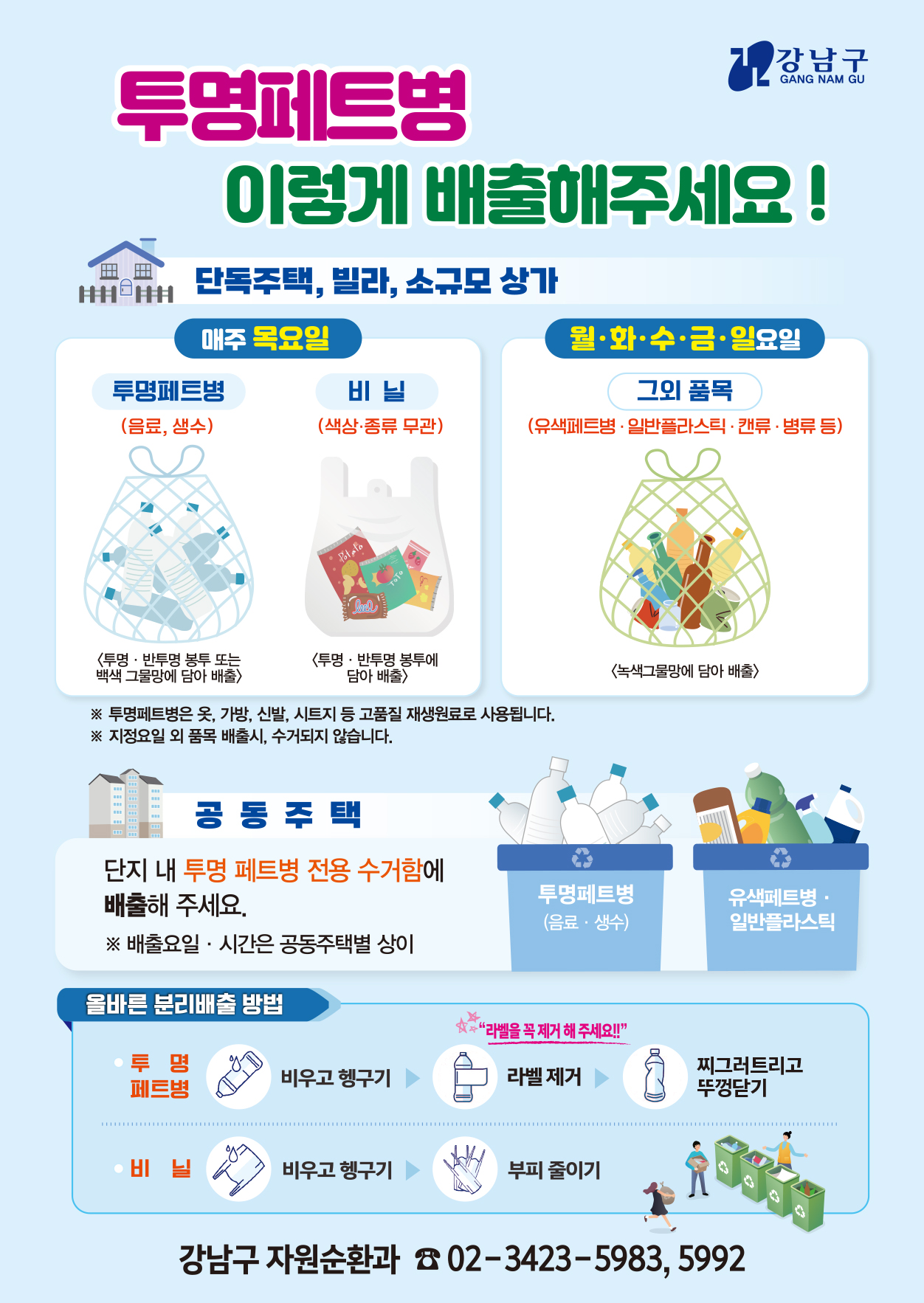 투명페트병과 비닐은 매주 목요일에만 배출해주세요