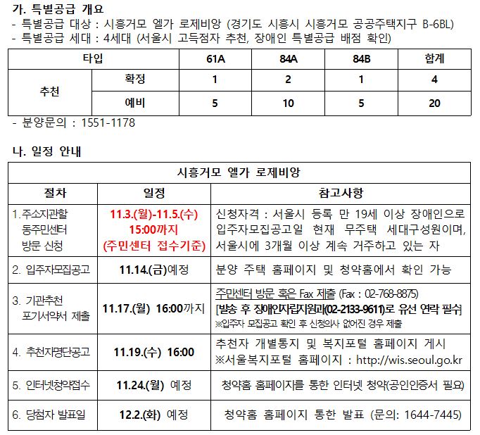 시흥거모 엘가 로제비앙 서울시 장애인 특별공급 기관추천 안내