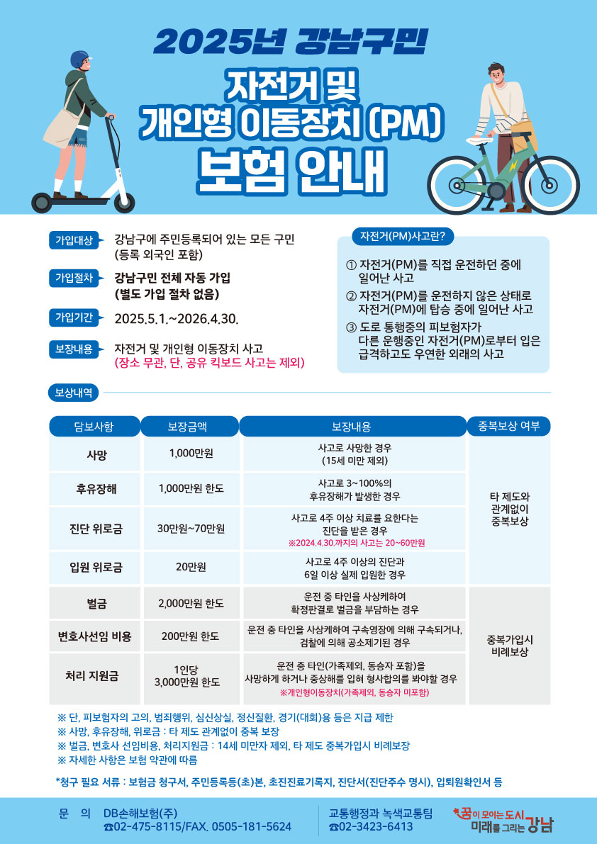 ○사 업 명 : 2025년 강남구민 자전거 및 개인형이동장치(PM)보험 가입