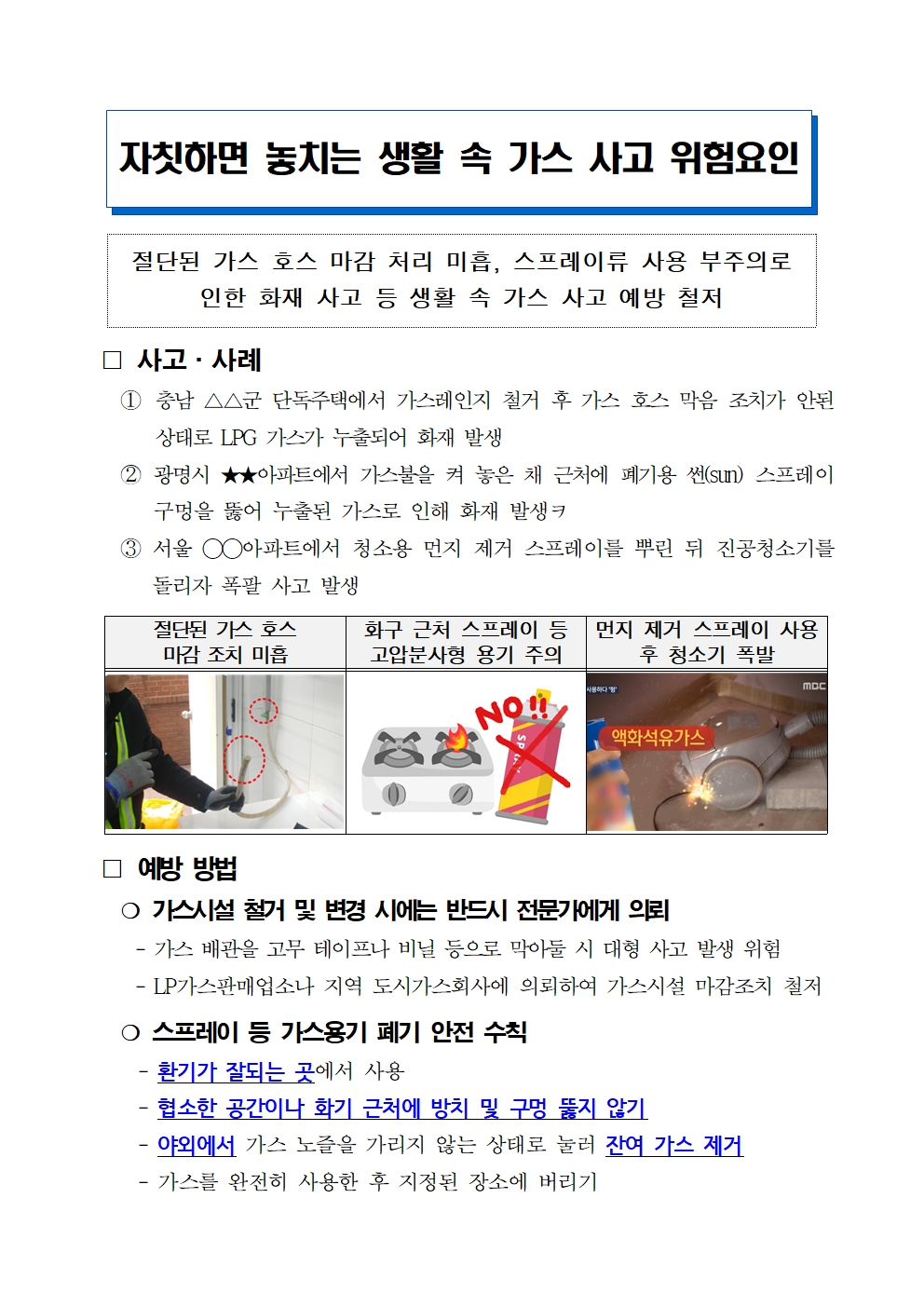 자칫하면 놓치는 생활 속 가스 사고 위험요인 예방 안내