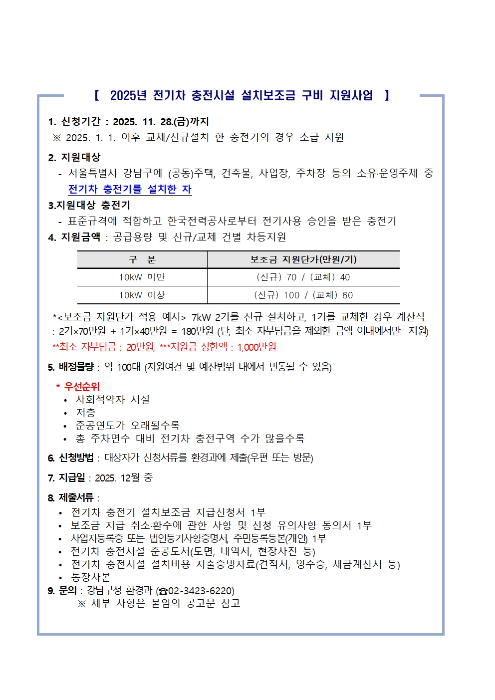 2025년 전기차 충전시설 설치보조금 구비 지원사업 변경 공고