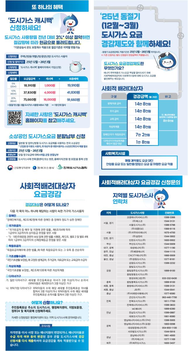 동절기 에너지복지 및 도시가스캐시백 제도 안내