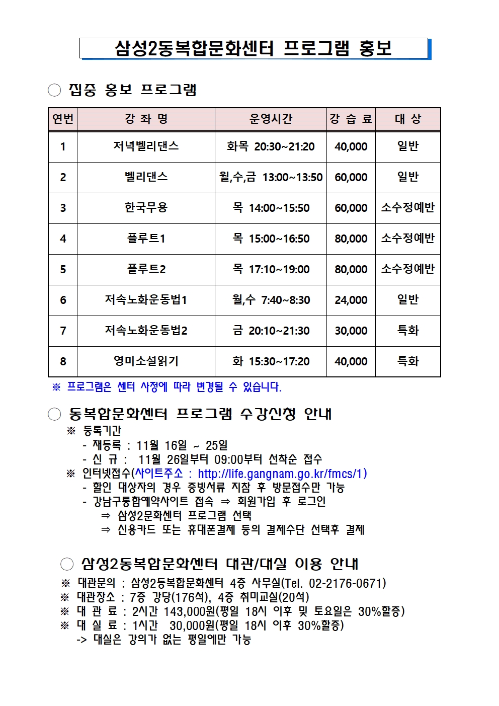 삼성2동복합문화센터 프로그램 안내(2025년 11월)