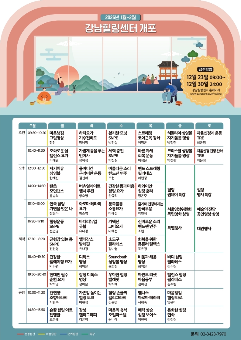 강남힐링센터 1-2월 정규강좌 프로그램 안내