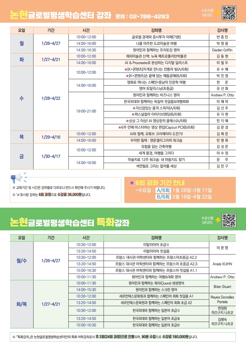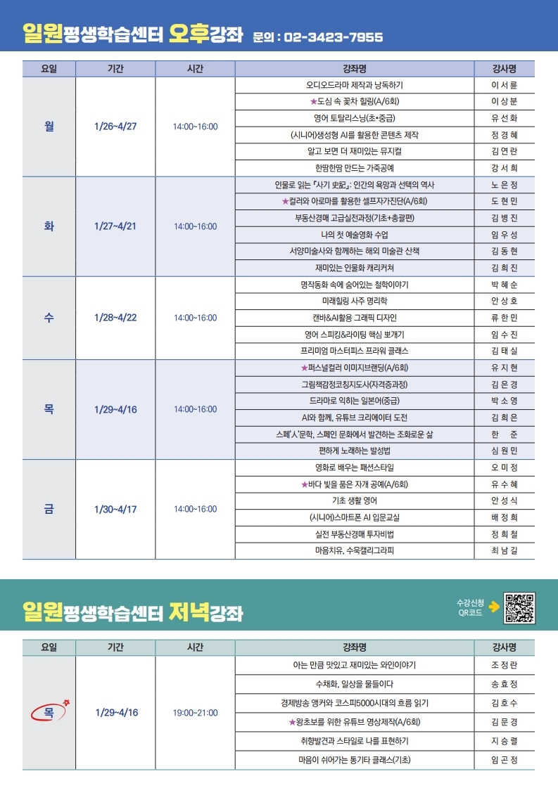 강남구 평생학습센터 「2026년 1차 학습자 모집」 안내