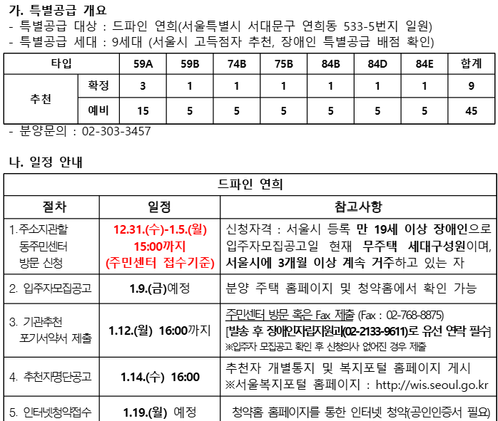 드파인 연희 서울시 장애인 특별공급 기관추천 안내