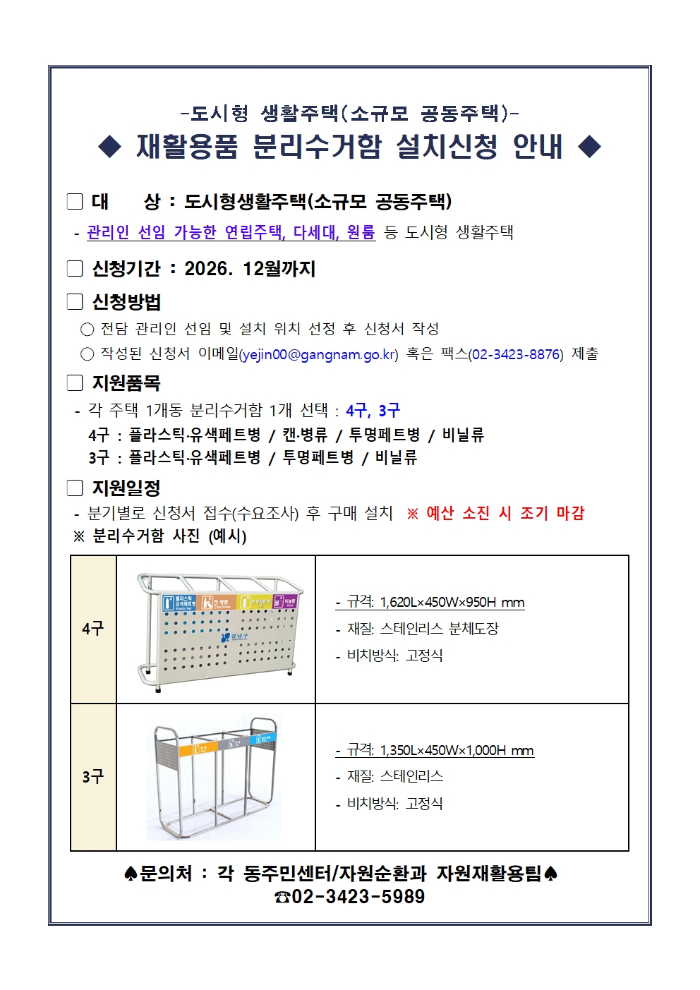 재활용정거장(재활용품 분리수거함) 신청 안내