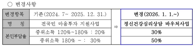 2026년 정신건강 심리상담 바우처사업(구 전국민 마음투자 지원사업) 변경사항 안내