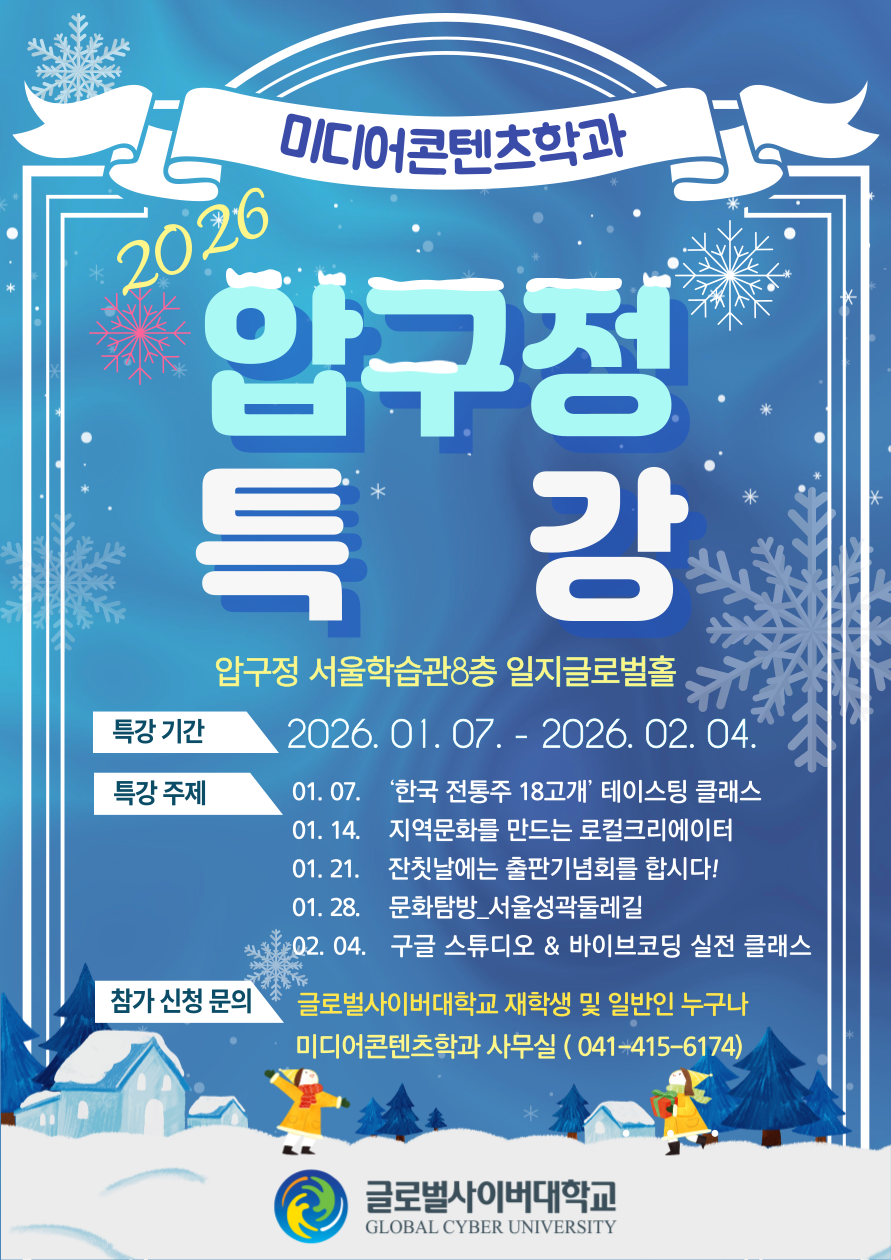 글로벌사어버대학교 미디어콘텐츠학과 2026 압구정 특강 안내(일반인 누구나)