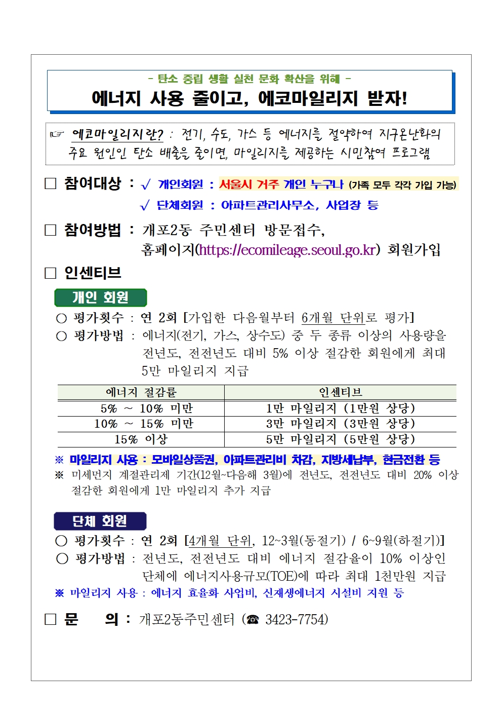 에코마일리지 가입하면 인센티브가 쌓여요!