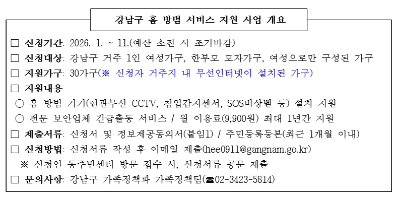 [강남구 홈 방범 서비스 지원 사업 안내]
