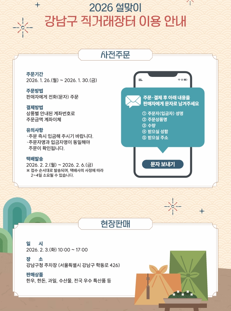 2026 설맞이 강남구 직거래장터 이용 안내 (사전주문+현장판매)