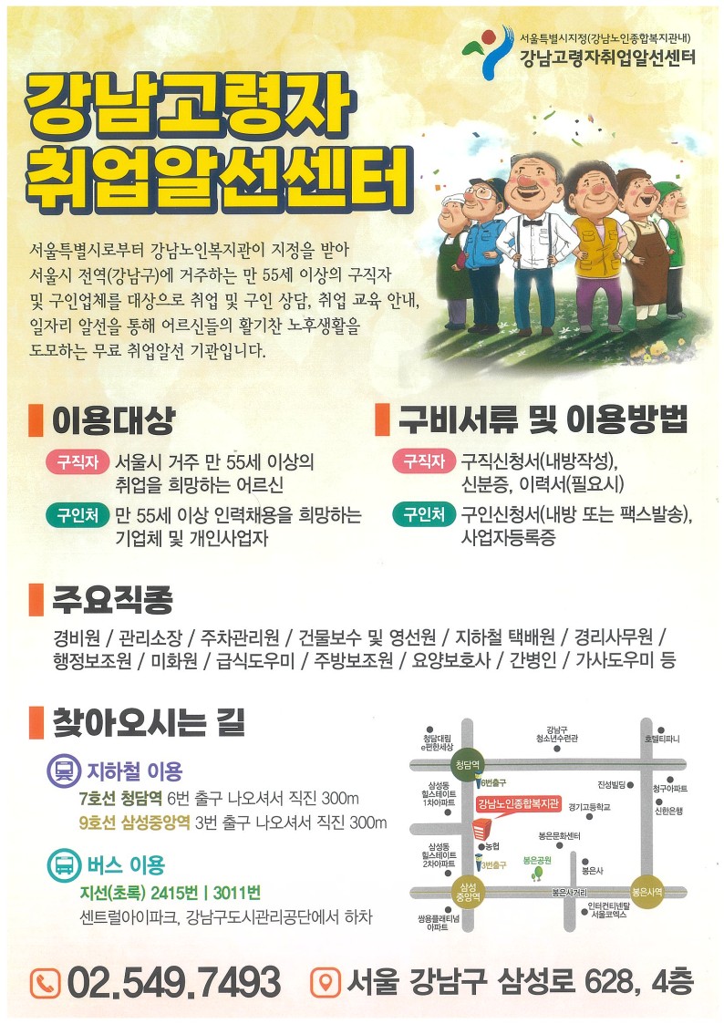 강남 고령자 취업알선센터 안내(노인종합복지관 내)