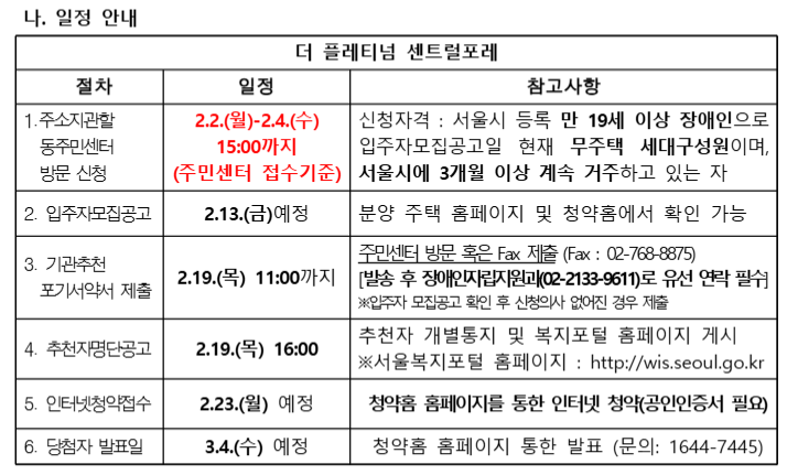 더 플래티넘 센트럴포레 서울시 장애인 특별공급 기관추천 안내