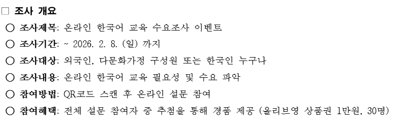 「한국어 온라인 교육 수요조사 이벤트」 홍보