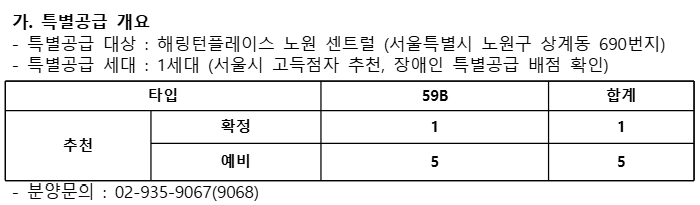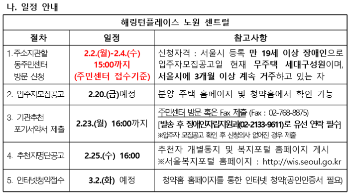 해링턴플레이스 노원 센트럴 서울시 장애인 특별공급 기관추천 안내