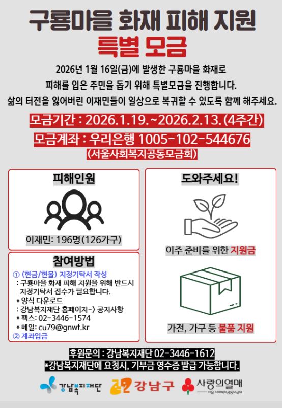 구룡마을 화재 피해 지원 특별 모금 안내