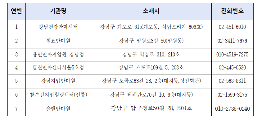 - 노인성 질환자의 건강증진을 위한 전신안마, 운동요법 등을 주1회(월4회), 12개월동안 제공