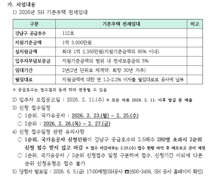 2026년 SH 기존주택 전세임대 모집 공고에 따른 접수안내