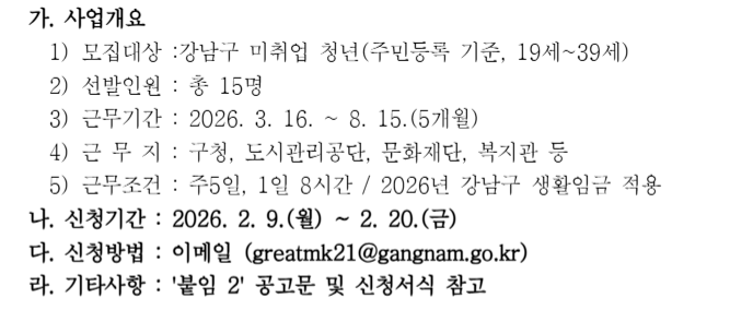 2026년 강남구 청년 행정인턴 지원사업 참여자 모집